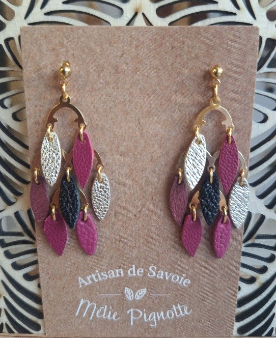 Boucles légères et colorées en cuir recyclé taillé à la main.